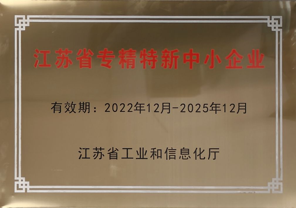 2022年12月20日我司“專精特新”認(rèn)定項(xiàng)目正式通過(guò),取得“江蘇省專精特新中小企業(yè)”正式認(rèn)定并授牌。